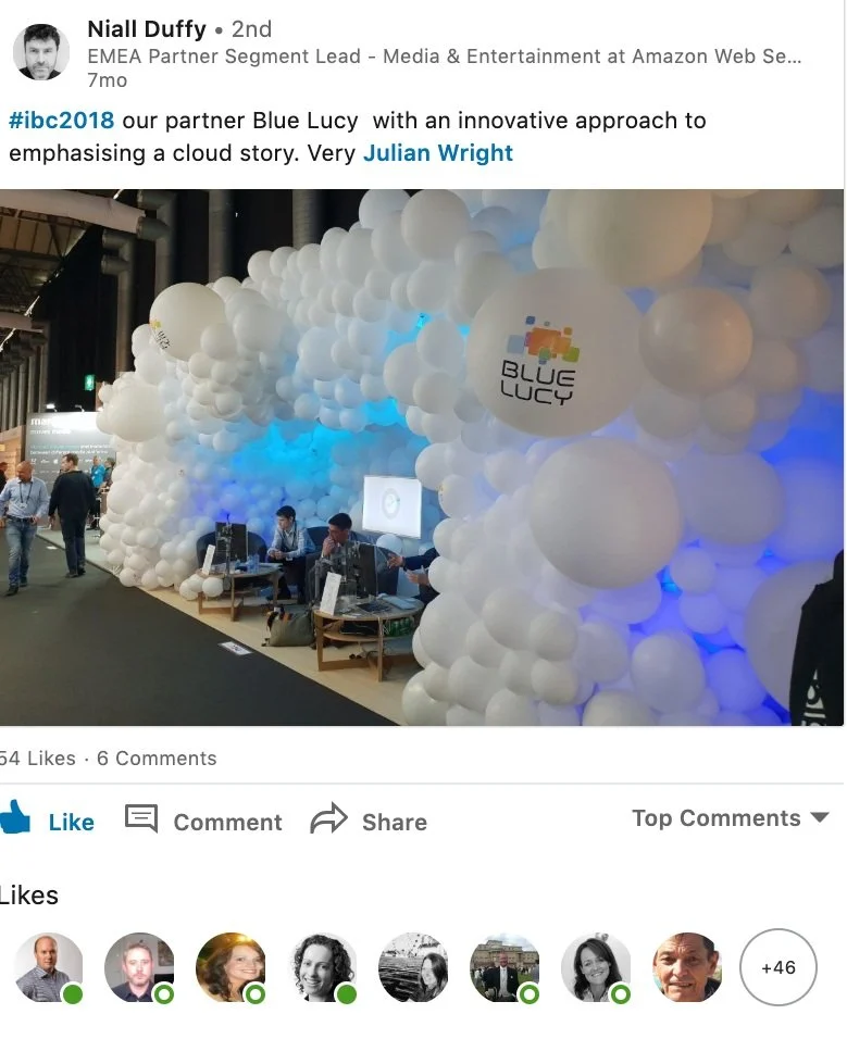 There was no doubt that the idea of creating a cloud out of balloons tied into Blue Lucy’s messaging and that a stand like this would get noticed at IBC, but not every client is brave enough to risk standing out from the crowd in such a big way. To their credit, the Blue Lucy team didn’t hesitate.
