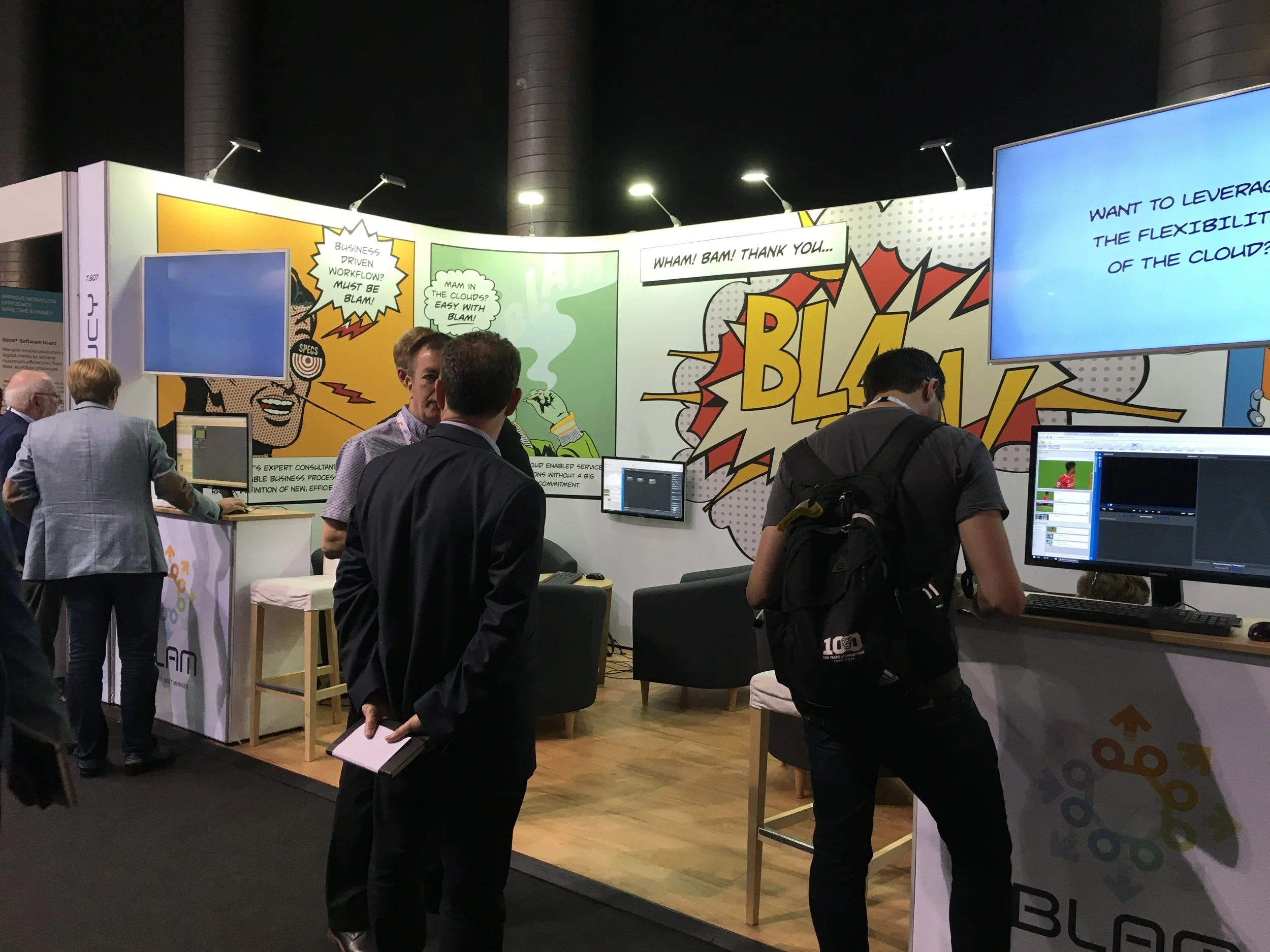 In 2017 we expanded on the previous year’s concept, using the introduction of a new pre-packaged product, BLAM-in-a-can, as a mechanism for on-stand giveaways and social engagement that fit in with the existing stand design. Our efforts were rewarded when Blue Lucy attracted the attention of the show organisers and were awarded the IBC award for most imaginative use of a shell scheme space.
